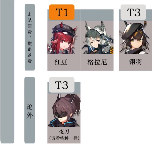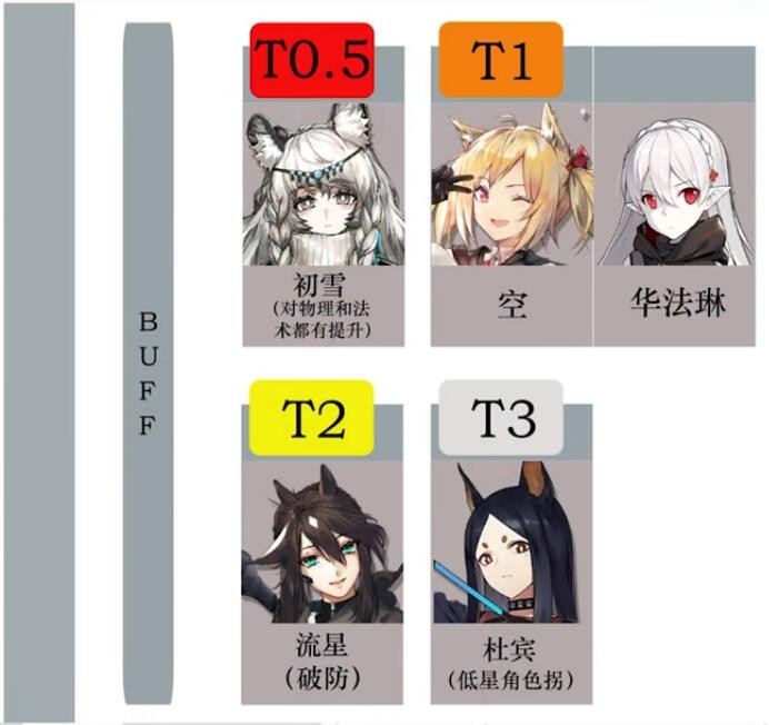 杜宾:专门给3星干员提高攻击力的辅助,3星干员中后期疲软,不建议重点培养