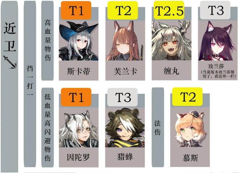 建议:高练度培养的1个挡1打1的物理近卫,其他随意