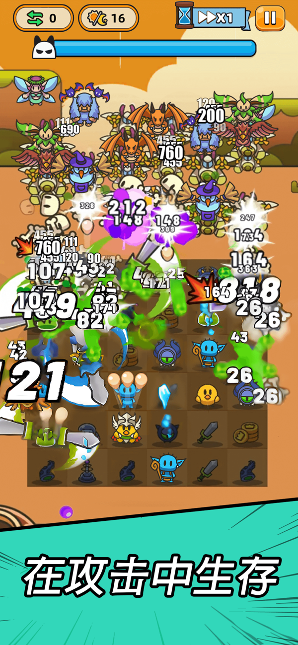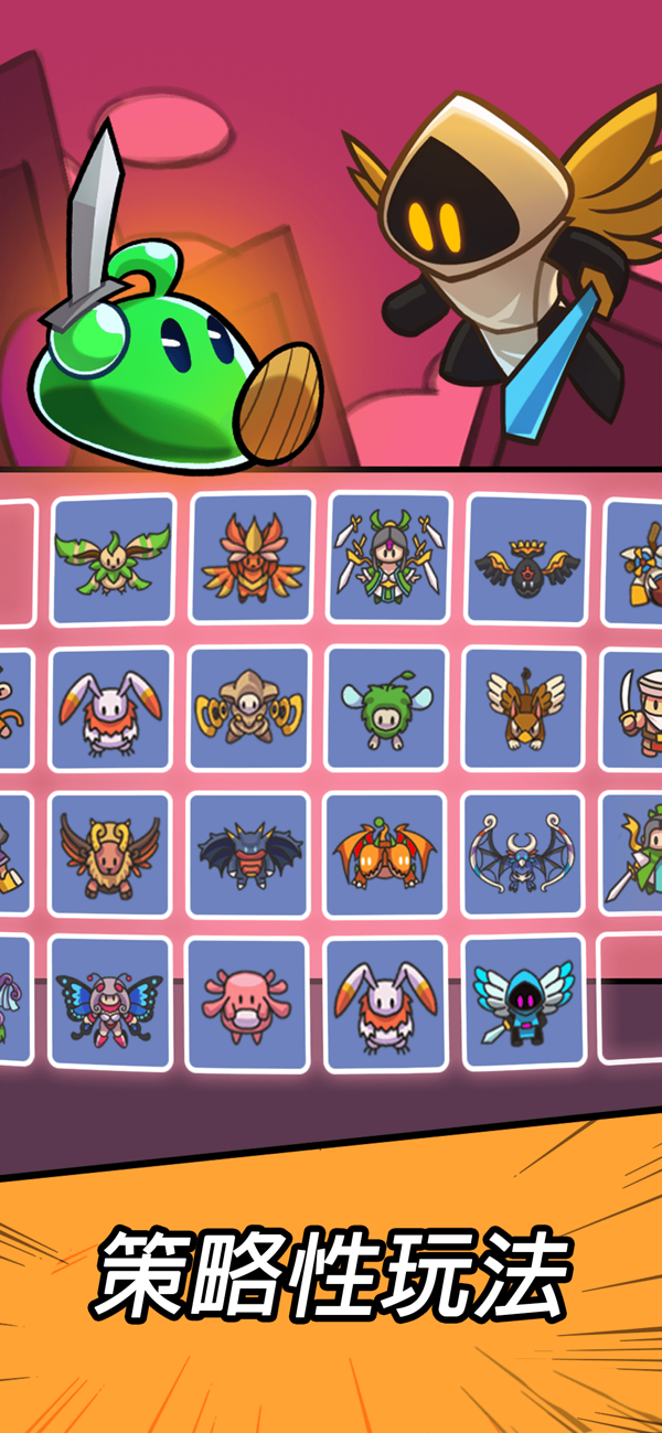游戏融合了合成,Roguelike 的元素,同时又具有塔防游戏的强策略性的特点。玩家可以通过合成,不断将战场上的角色进行升级;通过对随机掉落的技能进行选择,不断提高阵容的战斗能力;通过对战场上角色的合理移动,来达到排兵布阵的效果,抵御敌人的来袭。