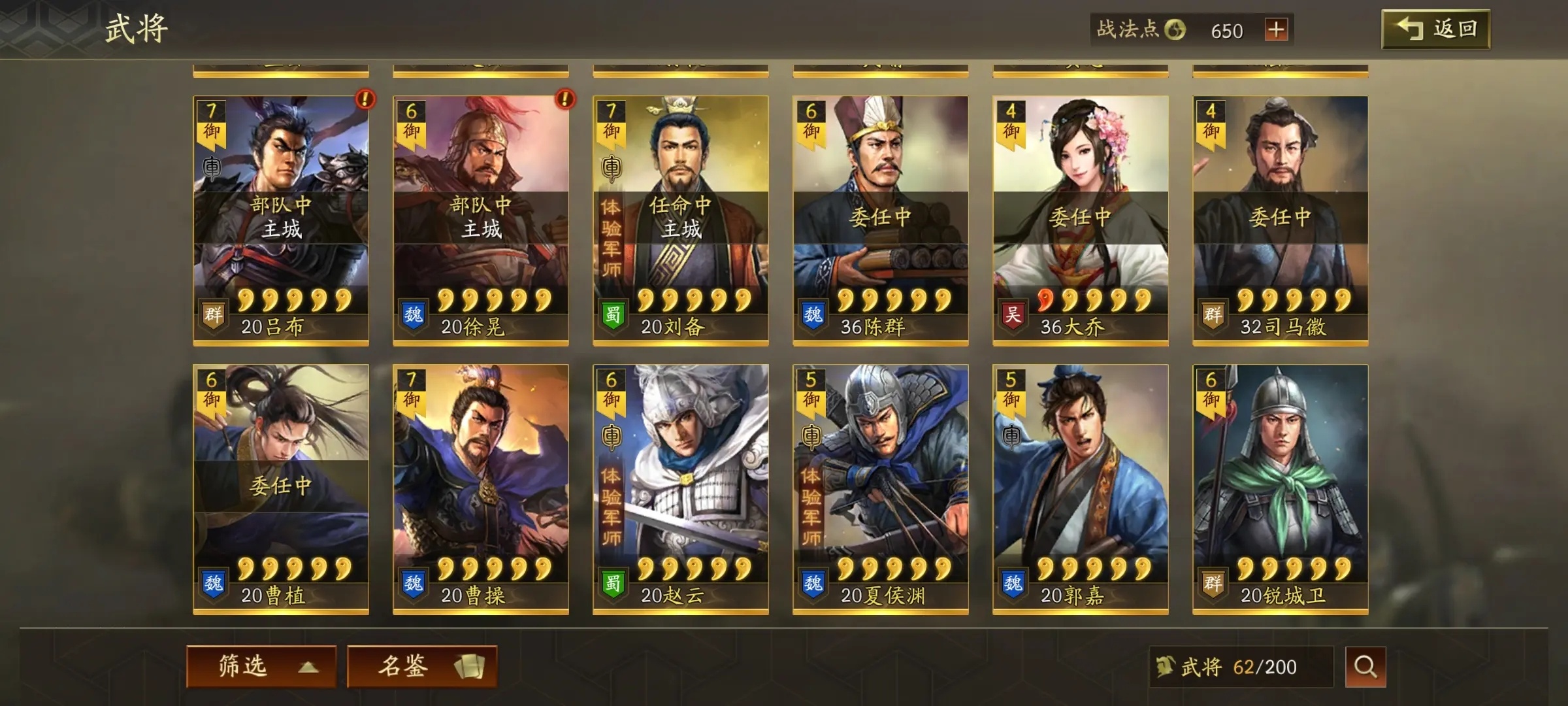 3、缘分组合:孙权+孙策+孙坚(统御17)