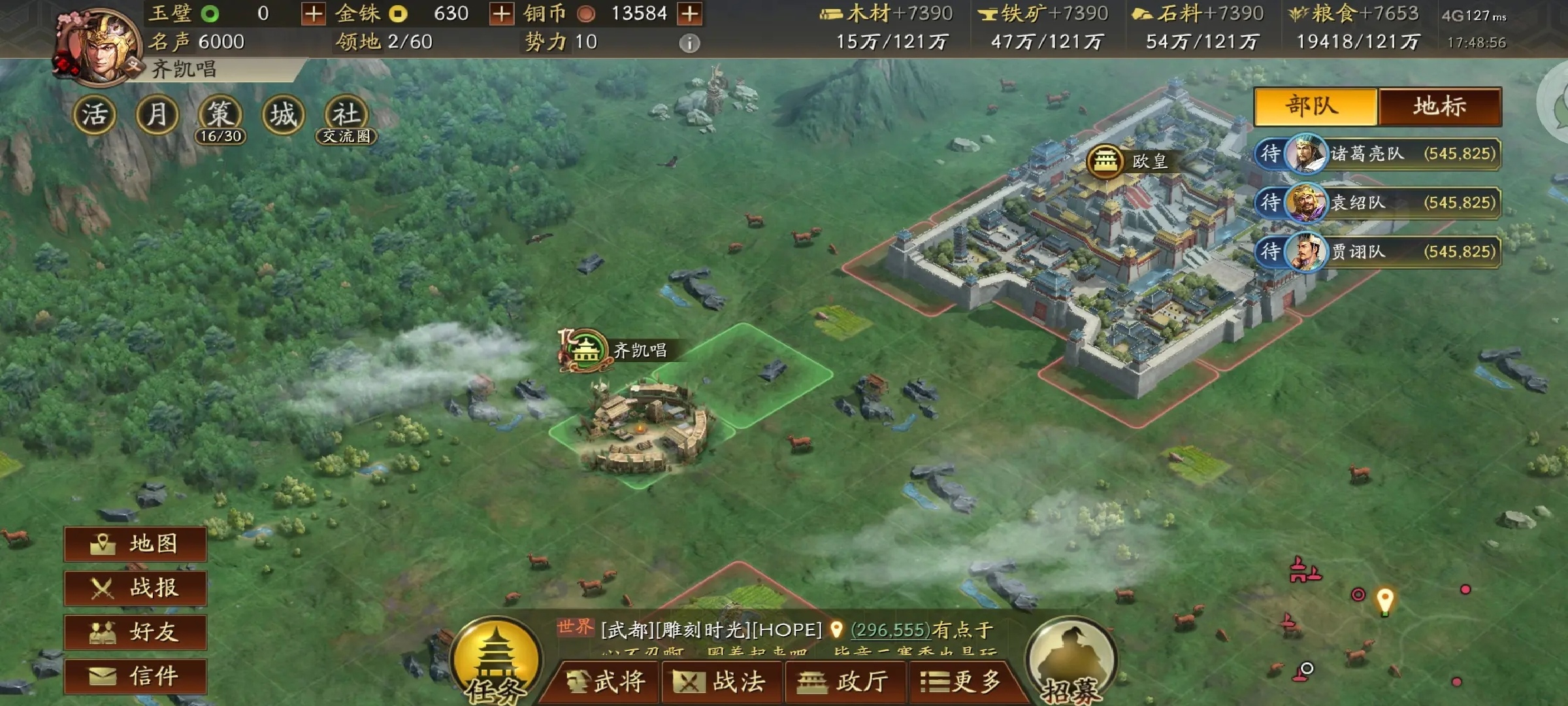同时我们在攻占敌方阵地的时候,一定要注意,有的时候敌我军力相差不大,就会处于战平状态,而这个时候我们可以选择利用第二队去支援,成功占领之后,我们接着就可以让第一队回城修养,这样的话,我们就可以将兵力损耗降到最低。战斗中增兵,也是一个不错的战斗策略呢。