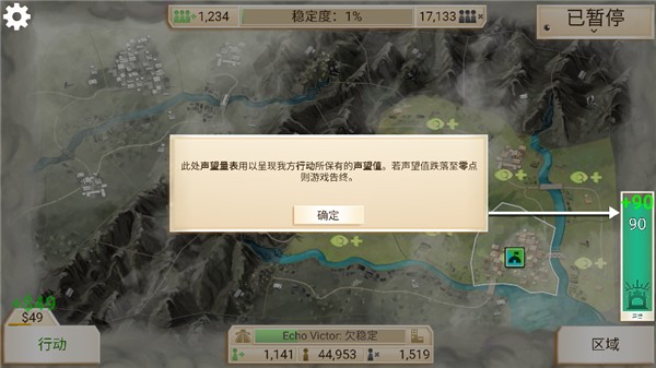 5、右下角标识声望,它呈现的是我方行动所保有的声望值,当声望值为0时,游戏失败,