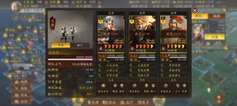 骑兵s级,武力91、智力48、统率84、速度53、政治38、魅力60,吴国武将,战法是肉身铁壁: