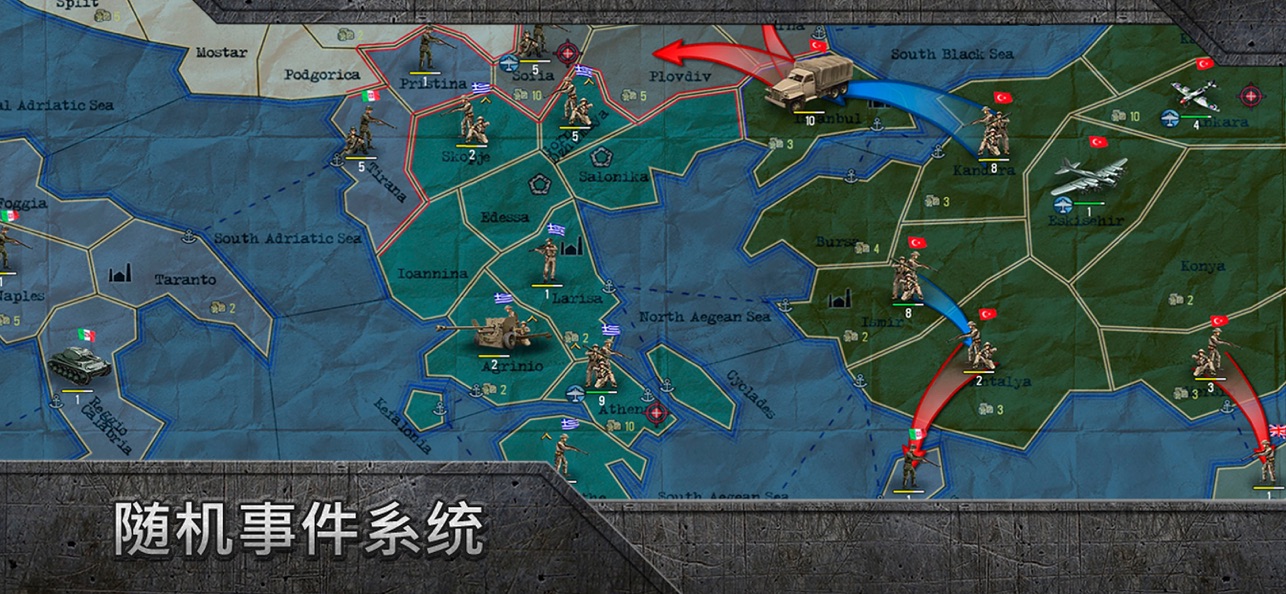 4、知悉并全面的了解你所在的周围国家具体军事部署情况,能够让你在主动出击或是防守的过程中更加的得心应手一些,作为一款二战题材的回合制策略游戏,你的存在是格外重要的,合理的部署并且赢下每一次的对抗对于未来的发展尤为关键。