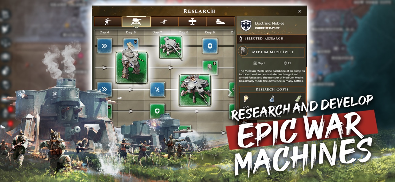 4、体验融合了历史单位和柴油朋克、特斯拉朋克和蒸汽朋克理念的奇幻创作的精彩游戏。集结大批部队,使用强大的机甲和机器人,包括拥有非凡力量和多功能性的特殊“泰坦”单位。