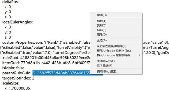 [22] 如果是移植炮塔,只需要查找移植物体的车体ruleGuid。如果是其他物件,则需要查找那个物件绑定的父物体ruleGuid