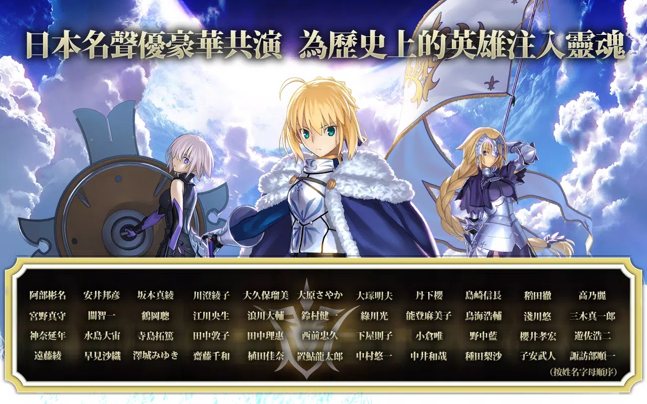 玩家作为主人公将与后辈玛修一起进行名为圣杯探索“冠位指定”的行动,为保卫人类、与人类历史对抗,与命运作战,这就是大致的背景简介。