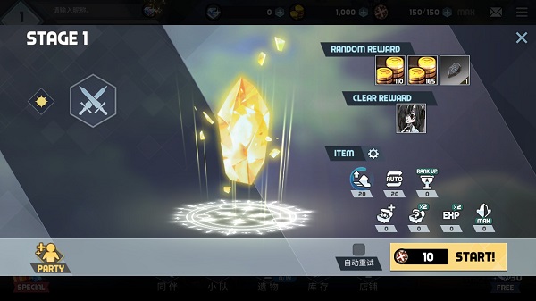 2、首先点击第一关,你会看到本关的所有详细,包括能够获得的奖励,还有一些其他的设置。