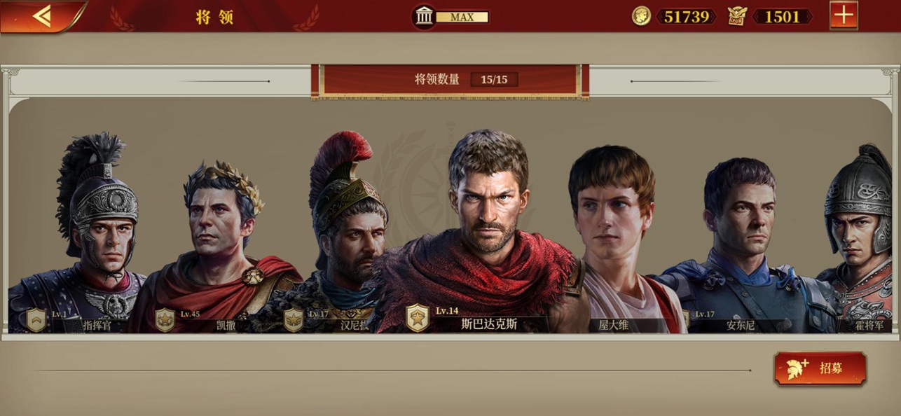 不过你选择玩大征服者罗马,初期还是得买够222阵型,先要222阵型毕业了,你打战役才比较容易过。222阵型:就是培养好2个步兵将领、2个骑兵将领和2个弓兵将领。这6个将领培养好了,在考虑买其他自己喜欢的将领。