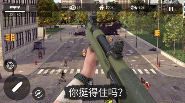 1、下载进入僵尸大灾难游戏,轻触并拖放屏幕上突出显示的部分进行瞄准;