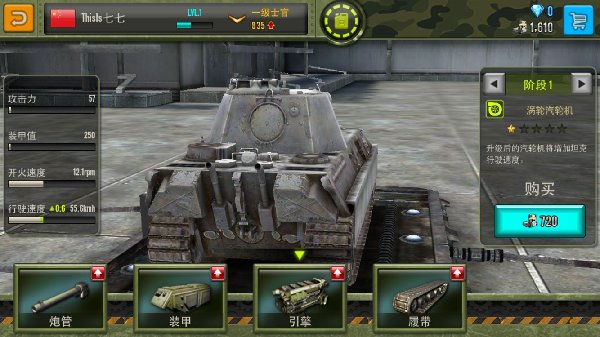 ②防守攻击型:先升级炮塔、炮管,再履带、引擎和装甲。