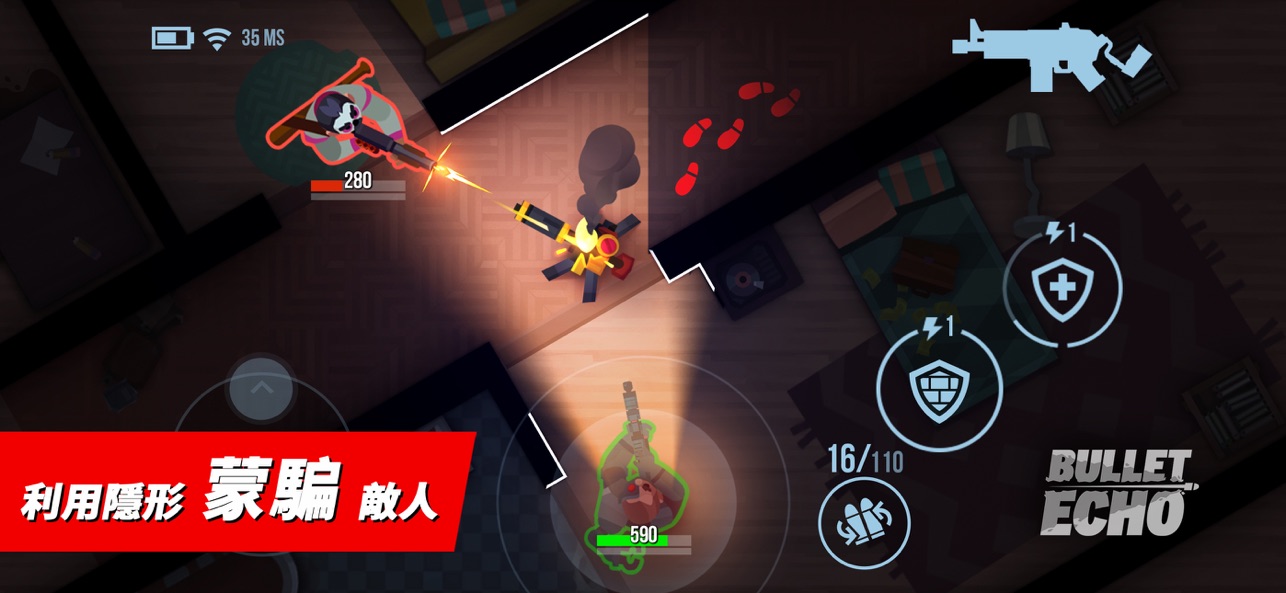 v7.5.2子弹回声国际服,英文名又叫Bullet Echo,是一款风格十分鲜明的枪战射击类手游。游戏采用独特的俯视角射击的玩法,带给玩家独一无二的战术体验。游戏拥有团队竞技、个人竞技和大逃杀等多种玩法,并且游戏中的角色还各自拥有独属于自己的独特技能,让游戏的战局非常的多变,玩家既要收集各种信息,也要快速反应,做出最佳的对策才能生存下来,夺得最终的胜利。