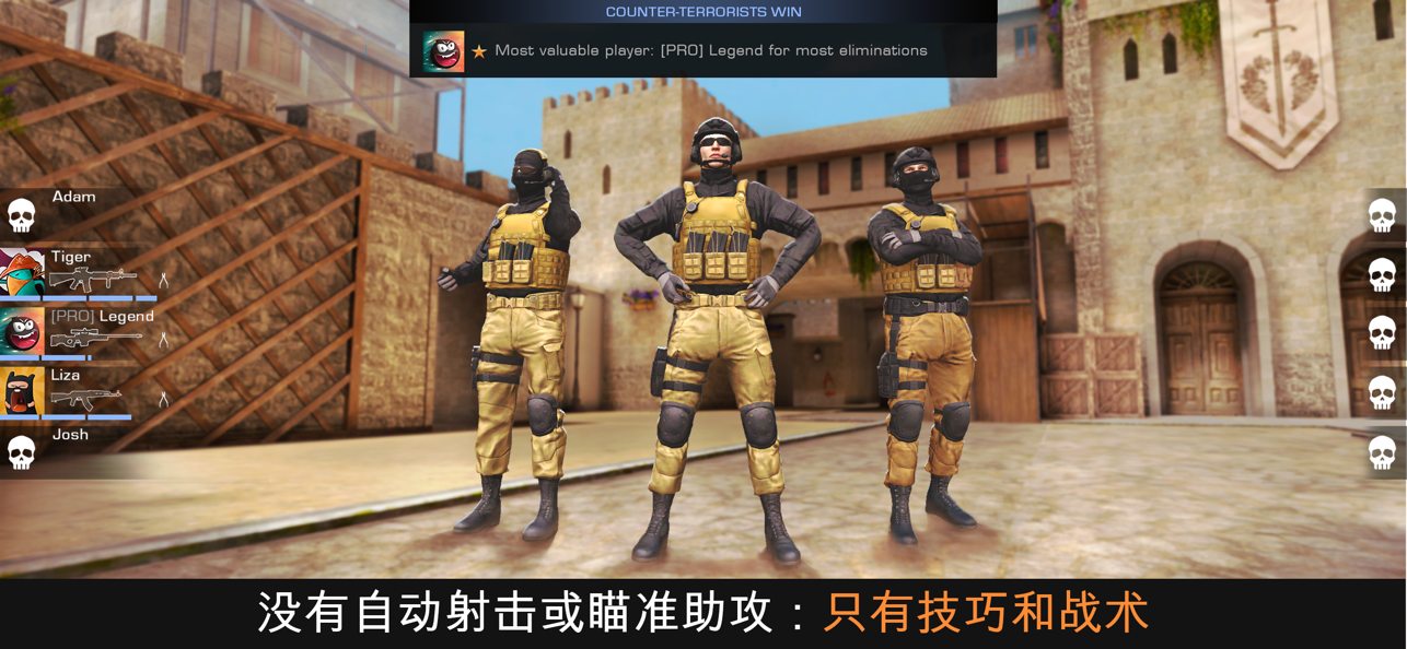v0.35.3对峙2国际服是一款非常好玩的枪战射击类游戏,该游戏采用了3D写实搭配第一人称的游戏视角,带给玩家最刺激的枪战竞技体验。游戏中包含了非常丰富的武器装备等内容,并且采用了警匪攻防的经典游戏模式,玩家将可以和自己的队友们一起体验极致的竞技模拟。同时,玩累了还有非常多有趣的休闲模式,将为你带来十足的乐趣。