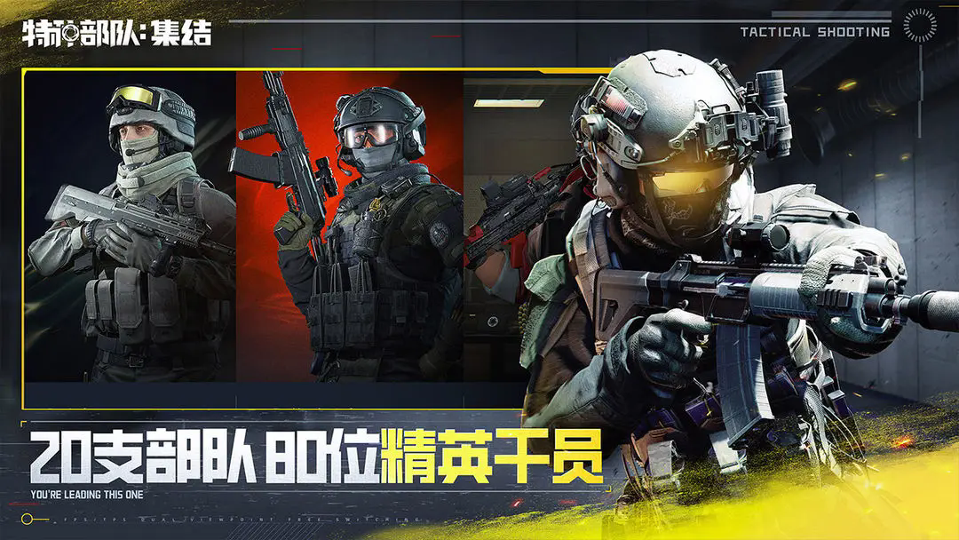 特种部队集结是一款十分硬核的射击竞技游戏,游戏双端数据不互通,玩家在手机端和PC端的段位等级和数据是不同步的,支持FPP和TPP两种视角,硬核的射击玩法,超80名特种兵,超700种的战术设备,玩家可以与自己的小队成员一起在战场驰骋,参与各种反恐作战任务或者特种作战任务,快来预约吧!