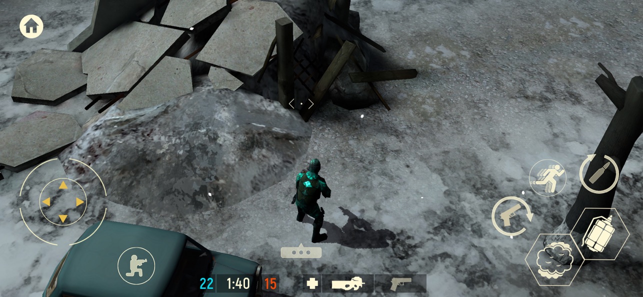 5、敌人较多时,还可以点击右侧炸弹图标,瞄准并投掷手雷,开始自由探索射击吧。