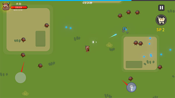冲鸭原始人是一款解压冒险射击类游戏,游戏画面简洁。玩家将化身一位强壮的原始人,利用手里的武器阻挡并击杀前来冒犯的敌人。游戏操作非常简单玩家只需要操控游戏的方向键控制原始移动,捡拾击杀敌人掉落的经验球并躲避敌人的靠近。当角色升级时会获得一个特殊攻击手段,之后的升级可继续升级已拥有的攻击方式也可选择新的攻击方式助自己击退敌人。