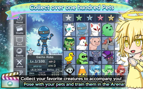 v2.1.2加查工作室是一款冒险闯关类游戏,游戏拥有多种款式各异的服装及饰品,玩家可以凭借自己的喜好随意搭配换装。游戏内配备了宠物系统玩家可以在战斗中收服各种稀有等级的宠物与你一起并肩作战,也可以在游戏的抽奖池内抽取神级宠物培养。玩家每次通关成功后都会获得大量通关奖励,玩家可以利用这些奖励升级进化自己的宠物或自己的装备品级。