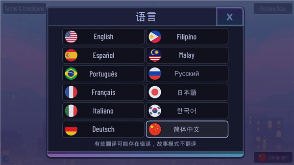 2、进入游戏后点击左下角可以更改游戏部分语言。