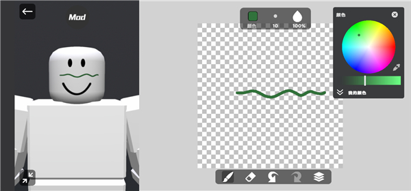 4、在颜色盘中选择自己喜欢的颜色,然后就可以在角色脸上进行涂鸦设计。