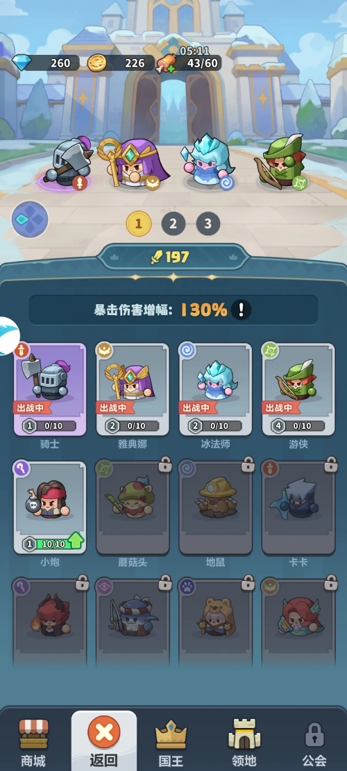 在阵容上推荐「冰法师」、「蘑菇头」、「游侠」、「骑士」。