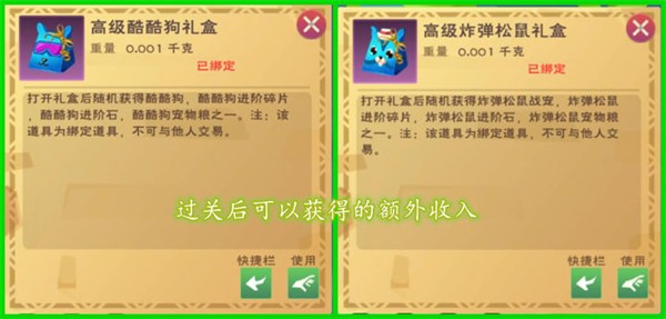 1-2阶的家园副本挑战无消耗,挑战成功无额外奖励。3阶的挑战会消耗2张对应boss的挑战券(进入即消耗),成功后获得低级boss挑战礼盒。4阶的挑战会消耗3张对应boss的挑战券,成功后获得高级boss挑战礼盒。礼盒获得的道具中除了许多人只打4阶,不打3阶。如果没有特殊说明,本攻略中及游戏世界里的开副本均默认为4阶。4阶礼盒如下所示。