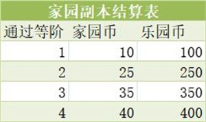 每周一早上六点会根据上周家园副本挑战情况发放不同数量的家园币和乐园币。
