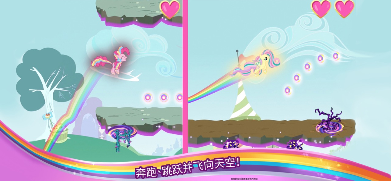 每轮奔跑收集可以收集的小马能量激活你的彩虹能量,可以用之前任务中收集的小马能量来升级彩虹能量;