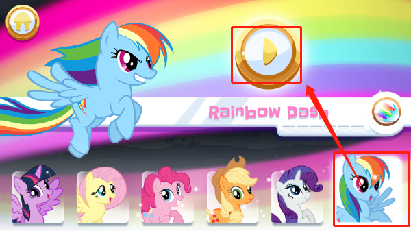 2、进入小马宝莉彩虹跑将游戏后需要先选择需要操作的小马驹;