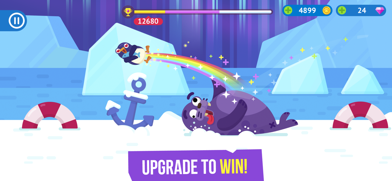 4、在企鹅落地到海豹身上的瞬间点击屏幕,海豹会将其弹飞;