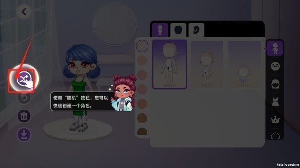 4、如果你不喜欢随机生成的造型,也可以自己来挑选装扮一下。