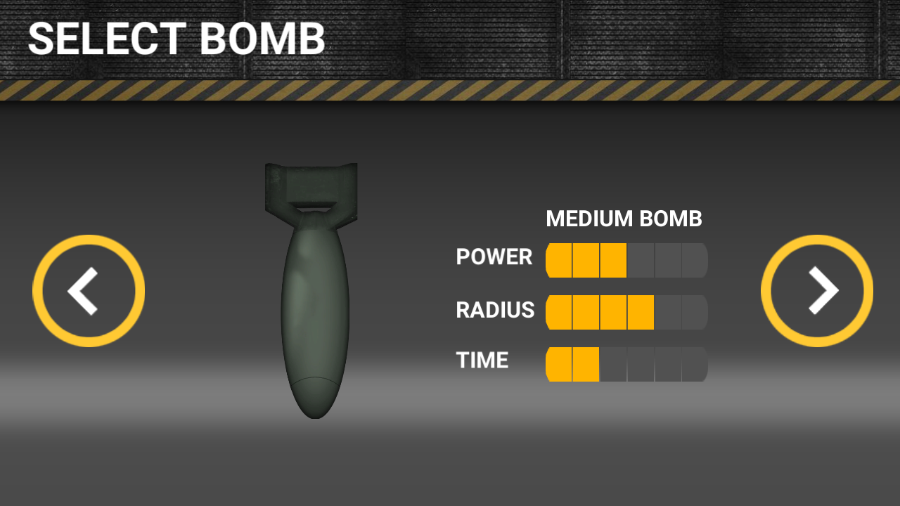 1、下载后打开游戏会直接进入选择核弹页面,每个核弹的威力、时长都是不一样的。