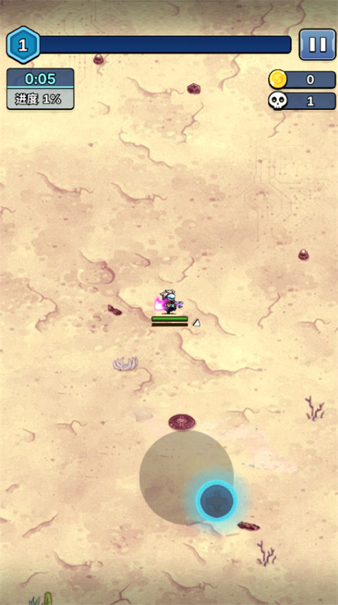 1、进入游戏后通过触摸屏幕来进行移动,人物会自动攻击。