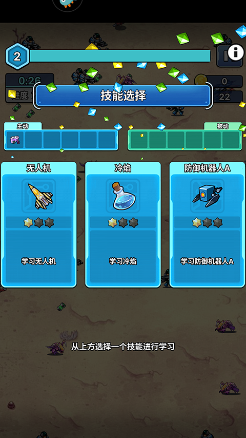 2、击败怪物获得经验,每升一次可以获得一次技能选择