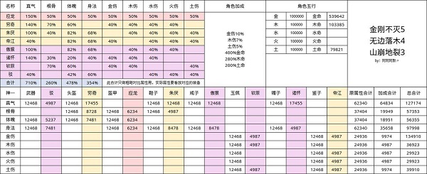 7、金刚不灭4+无边落木3+碧海潮生3+烈火燎原3+山崩地裂3
