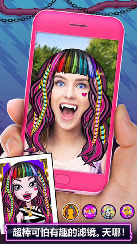 1、为精灵高中的怪物姑娘们使用酷得诡异的美发工具,如魔法增长喷雾、染发剂、摩丝等!你甚至还能使用 Znap 来电头发!
