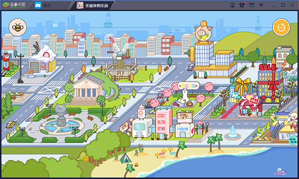 1、进入游戏就是一个城市,里面有各种各样的建筑物,小朋友们点击哪个建筑物,就会进入这个建筑物里,然后在这个建筑物里自由活动。