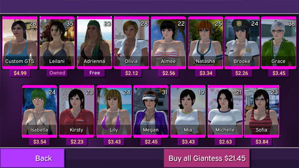 巨大少女模拟器是一款模拟休闲类游戏,玩家将扮演一位高大的女性巨人体验身高万丈俯看下方渺小的人群。玩家可以按照自己的想法随意游玩,操控着这巨大的主角在巨大的世界中随意探索。可以操控着巨人随意破坏踩踏下方渺小的人群,游戏将以3D立体形象展现出来。游戏还有多款人物模型可供玩家随意挑选。