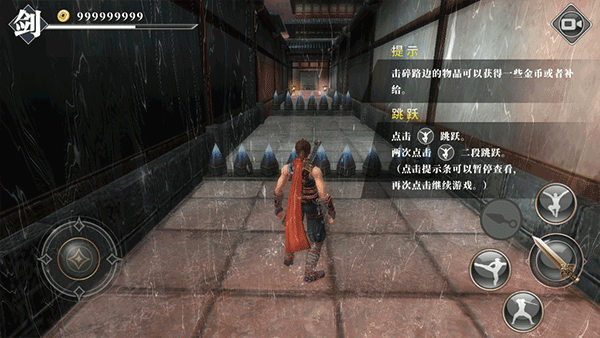 7、开门后击杀全部的敌人后,我们可以进入下一关,这里我们需要点击两次跳跃进行二段跳