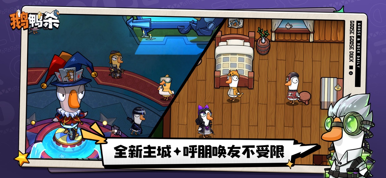 v4.02.02鹅鸭杀是一款特别益智又烧脑的狼人杀手游,进入到宇宙飞船中开启各种任务解锁和任务完成,快速的找到更多难题的正确答案,开启无所顾忌的线上解谜挑战,体验危险系数较高的游戏,真正的去面对更多危险和压力。在地图里会出现各种各样的任务,玩家通过这些任务提升自己的冒险技能以及解谜技能,发现坏人角色!快速的将这些隐藏的内奸识别出来,就能完成所有任务了,看似简单的小游戏特别伤脑,其中还增加了互动快感和“节目效果”,让熟人局当中更加能够充满欢声笑语哦!