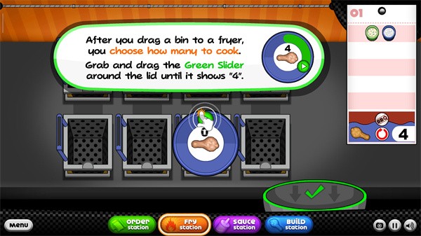 8、当你把盒子拖到炸锅里后,你可以选择煮多少,抓住并拖动盖子周围的绿色滑块,直到它显示“4”;