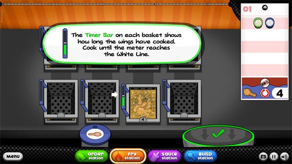9、每个篮子上的计时器条显示了鸡翅烹饪的时间,这里我们需要将鸡翅煮到白线的位子;