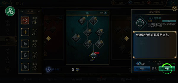2、然后通过玩家的能力点解锁技能;