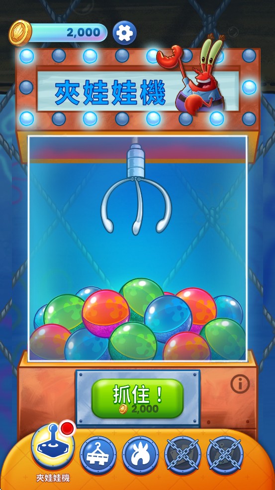 2、挑战夹娃娃机,试试你的手气! 你可以在这里赢取新的服装,还能升级每套服装独特的炸泡泡能力。