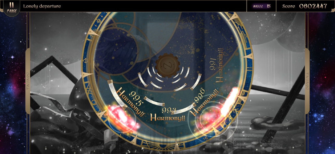 下落式音游与圆形谱面的结合,在更广的区域捕捉每一个音符,捕捉成专属于你的诗篇,记录下冒险中的回忆与瞬间。