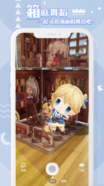 箱庭岛随拍AR是一款基于现实与虚拟之间的拍照休闲类游戏。玩家可利用这款软件可以在现实世界中创造出自己喜欢的虚拟人物,游戏拥有多款虚拟角色可供玩家选择。只需要打开游戏玩家就可以通过收集看到自己选择的虚拟角色仿佛打破次元壁来到你面前与你聊天互动。让你与喜欢的虚拟角色一起拍照。