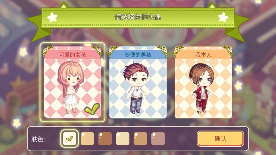 3、然后选择好自己的角色,并换好肤色后,点击【确认】;