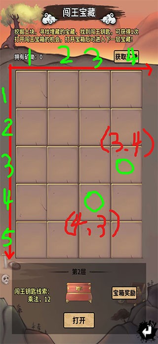 闯王宝藏线索(+ -乘除)破解思路,横纵格子坐标相互加减乘除,格子是4x5,总共20个格子。因为格子限制,算式前面的数最大是5,所以算式有6以上的成立算式,也是不成立的,以下大致解法。