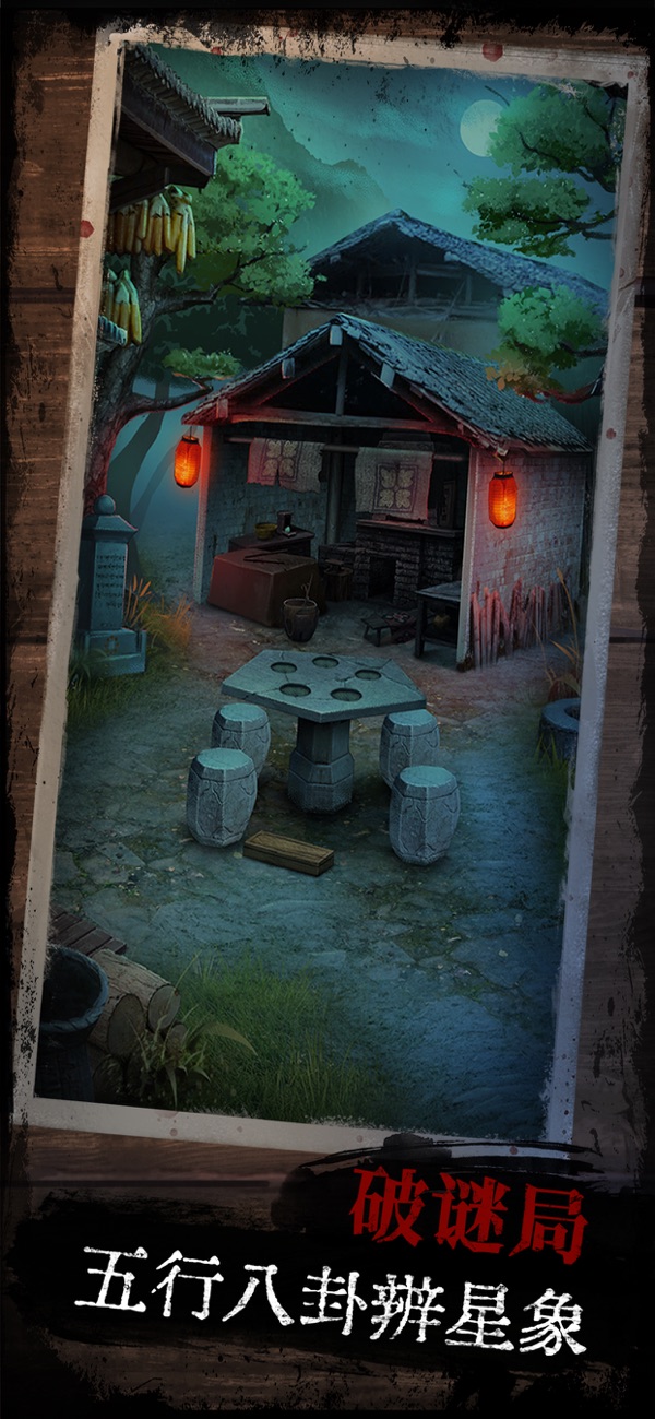 左手边,根据庭院文字,从下往上→土水火空→得到疯狂的石头→左屋过火→石头+门帘上方提示→把右边墙壁分为5类→石像拿鼓→放下来→根据牛皮纸→拿牌子→开后院门(建议跳过)→找不同1、45、368(这张没抠干净)、3679【我用九宫格对应】→进入