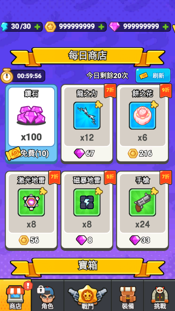 v1.0.2打了个龙无限金币钻石版是一款不需要看广告,解锁无限金币无限钻石的肉鸽射击闯关游戏,游戏中玩家可以选择关卡的难度来进行挑战,放置射击的玩法,玩家只需要不断的给角色装备武器,选择属性加成即可,游戏中的角色也有多个可以选择,拿起你的武器来对抗来袭的巨龙吧!