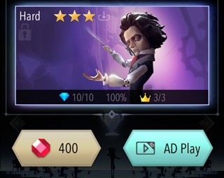 在选择关卡的页面点开音符气泡,页面等一会才会在右上角出现关闭按钮,此举是想让玩家通过看激励广告拿多倍奖励。官方在取得广告收益的同时,给予玩家红宝石,也让玩家对此广告机制有所了解。